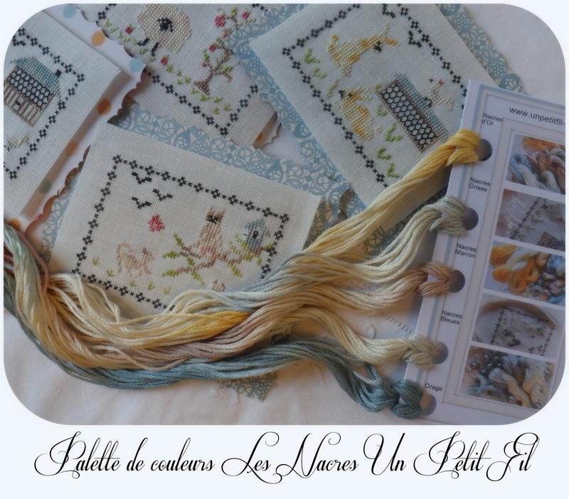 et en complément de la palette les Nacres 1...contenant les fils, Nacres Bleues, Or, Marron, Grises et Orage