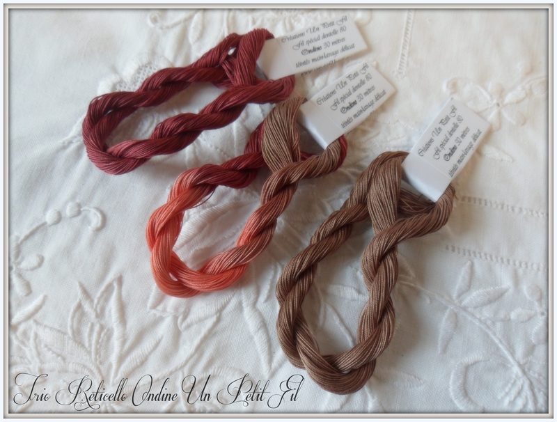 Conçu pour vos ouvrages de Reticello mais aussi pour la dentelle aux fuseaux, ce produit est composé de 3 échevettes de 30 mètres de fil spécial dentelles 80, l'une nuancée que vous pouvez retrouver à l'unité dans la rubrique Fil spécial dentelles 80 à l'unité (voir en suggestions), et les deux autres unis, reprenant les teintes du fil nuancé central.